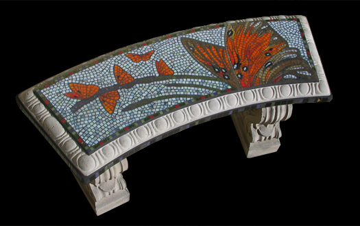 Vitreous Glass Tesserae with Black Grout on a Concrete Bench