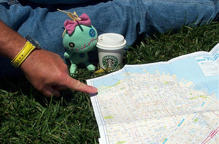 Give me a cup o' joe & a map!! Scrump helped us plan our